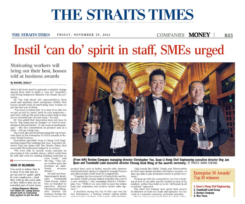 Smaller firms need to generate a mindset change among their staff to instil a “can do” mentality, said Acting Manpower Minister Tan Chuan-Jin yesterday. Mr Tan told about 220 representatives from small and medium-sized enterprises (SMEs) that bosses should work on motivating their workers to get the best out of them.